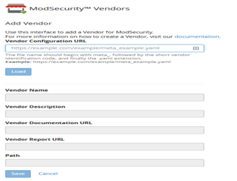 - Enter the URL for ModSecurity Vendor in the “Vendor Configuration” text box.