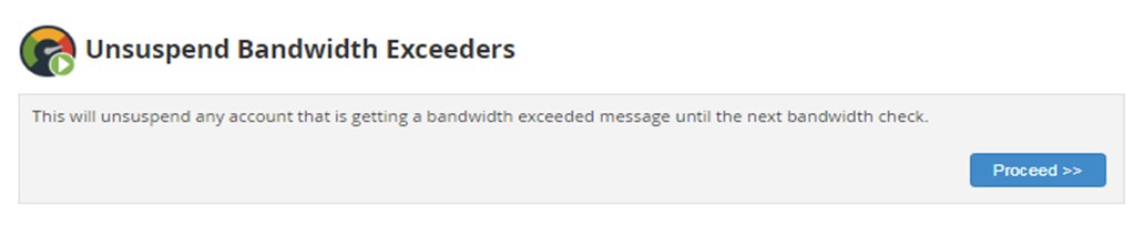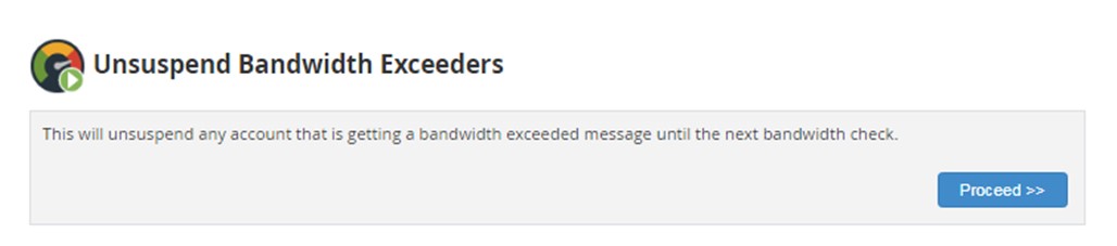 Then for unsuspending an account which has exceeded their bandwidth, click “Proceed”. You will receive following confirmation message: