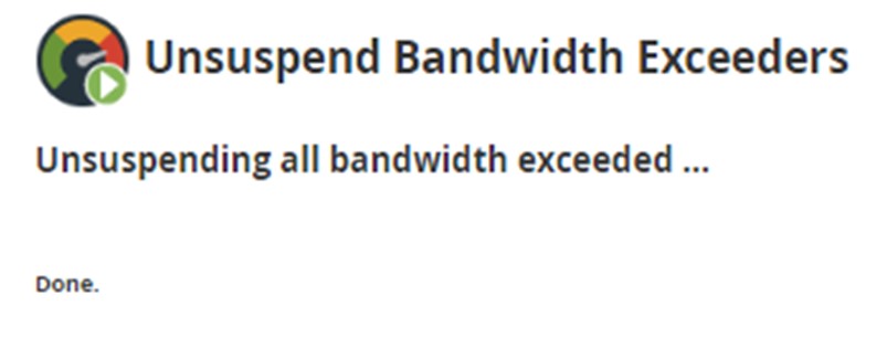 Using this feature you can simultaneously unsuspend all of the accounts which have exceeded their bandwidth. Until you perform the next bandwidth check, these accounts will remain unsuspended. When any account of the user exceeds its bandwidth limit, then that website becomes inaccessible to the visitors but the accounts’ owner can still log in to their cPanel account.