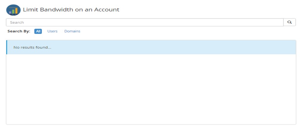 - In the WHMs’ “Limit Bandwidth Usage” interface increase the bandwidth limit for that particular user. Use the following steps for accessing the “Limit Bandwidth Usage” interface