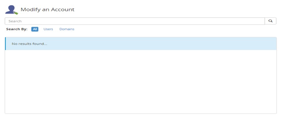 Log in to the WHM >> you will see WHMs’ home interface >> navigate to the “Account Functions” option >> then select the “Modify an Account” interface.